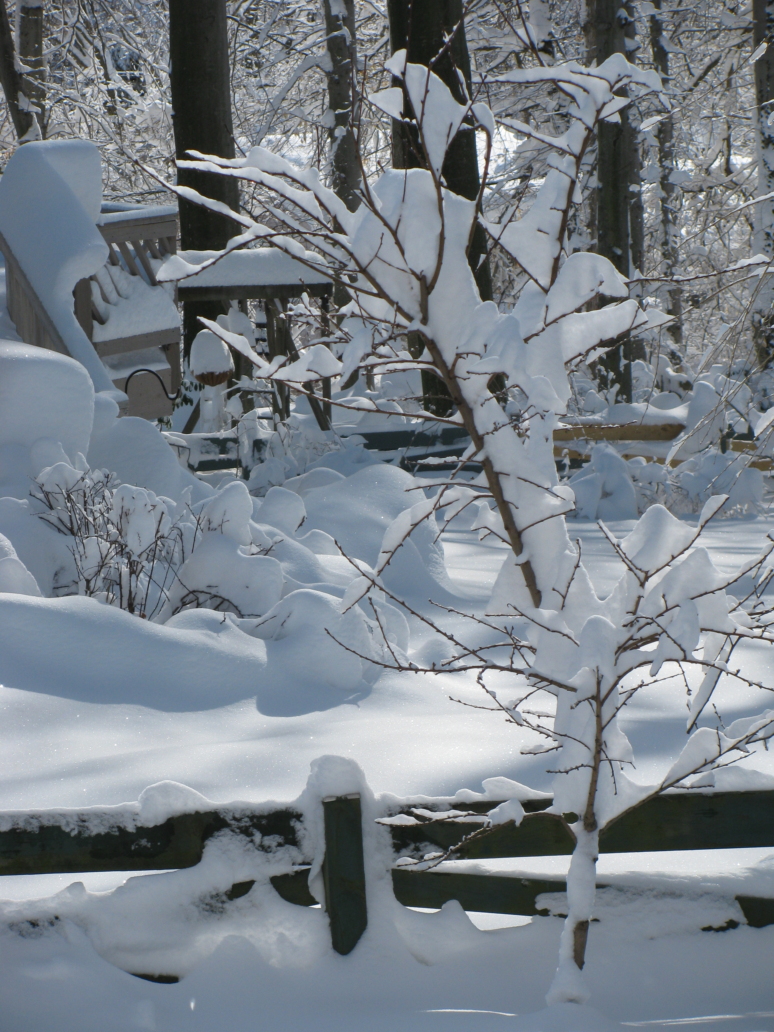 A few doors away, a house lay eerily dormant, curtains partly pulled, an apparent victim of foreclosure. The entire front yard and driveway was a thigh-high flat sheet of snow, its surface broken only by fallen branches and footprints. A few steps beyond, an elderly man was digging himself out from the front door down to the sidewalk. It seemed like he had hours to go before he would manage to extricate himself from the enclosure. It was heartbreaking to see him work so, and though we exchanged a few words, I felt bad that I did not have the strength to pitch in.