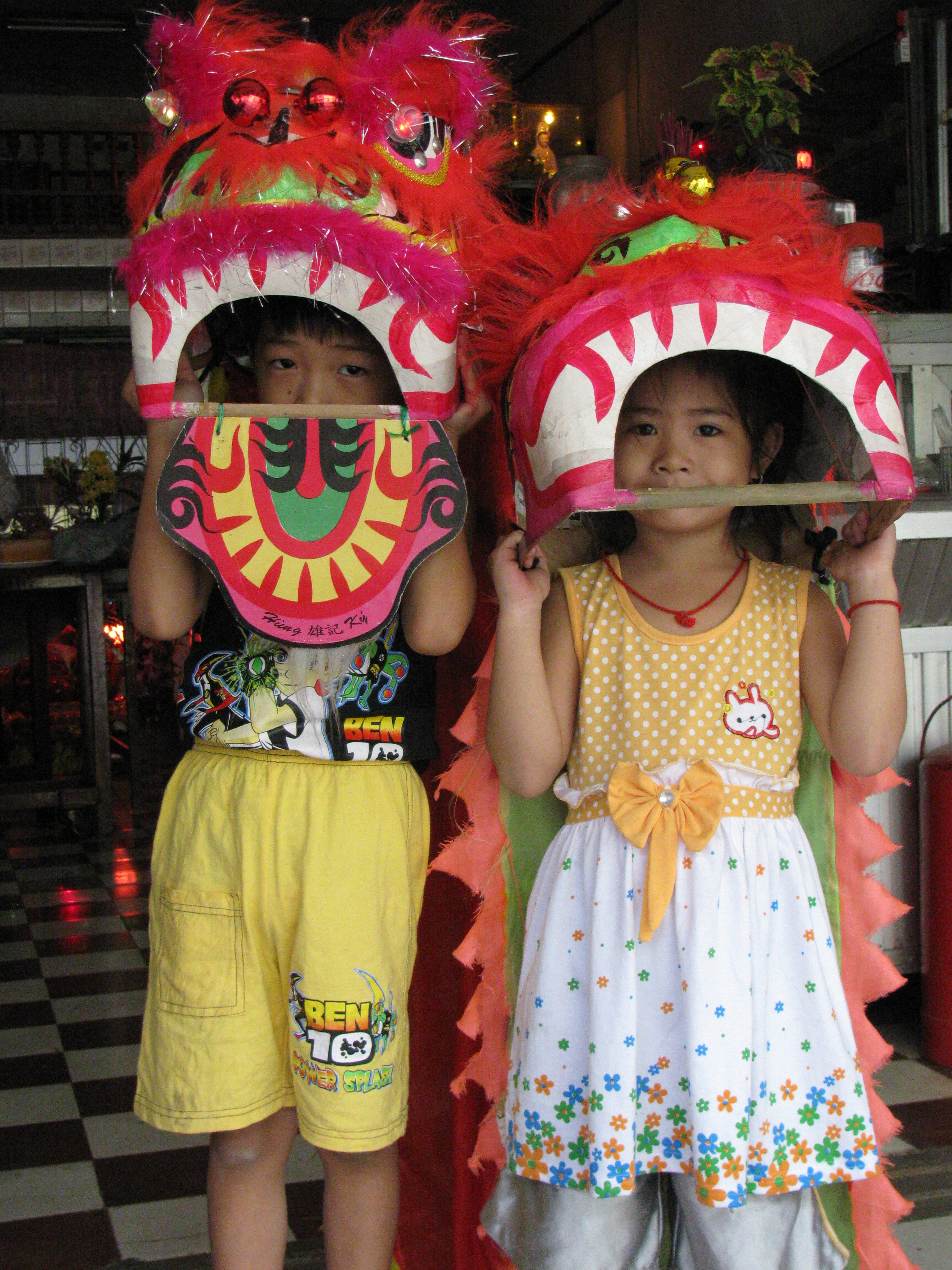 I know that they were shopping for chickens and noodles; that the bicycle vendors were out in full force peddling oranges; that children were excitedly prancing around in papier-mache dragon costumes in preparation for tomorrow’s parade; that massive blocks of ice were being carted around the streets, chopped up for restaurant owners and residents alike; that the testing of fireworks was causing mild tremors and gusts of smoke; that offerings of flowers and food were being delivered to the great Buddha near the town center; that the riverside fair was probably in full swing, the street children romping around the kiosks; that storekeepers were burning paper money in tins set out on the sidewalks; that ceremonies were getting under way in Chinese temples; and that families were setting out offerings of chickens, vegetables, drinks and flowers to honor ancestral spirits.