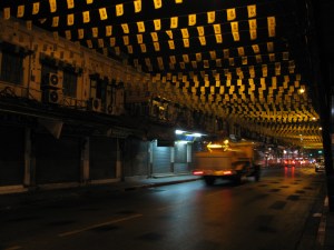 I’d walked through neighborhoods around Jim Thompson’s House and the Myanmar consulate, I’d spent chunks of time at various temples, Kao San Road, Chatuchak Market, in the Sukhumvit Road area. One afternoon, I slipped into the Siam Center just to escape the midday heat, and ended up watching an independent European film called Once. I sought out a camera and other techie-gear at MBK Center or Panthip Plaza on Petchburi Rd; I headed to Chinatown to track down cheap silk, then found a seamstress on a sidewalk who offered to transform it, in just a few hours, into a sleeping liner.