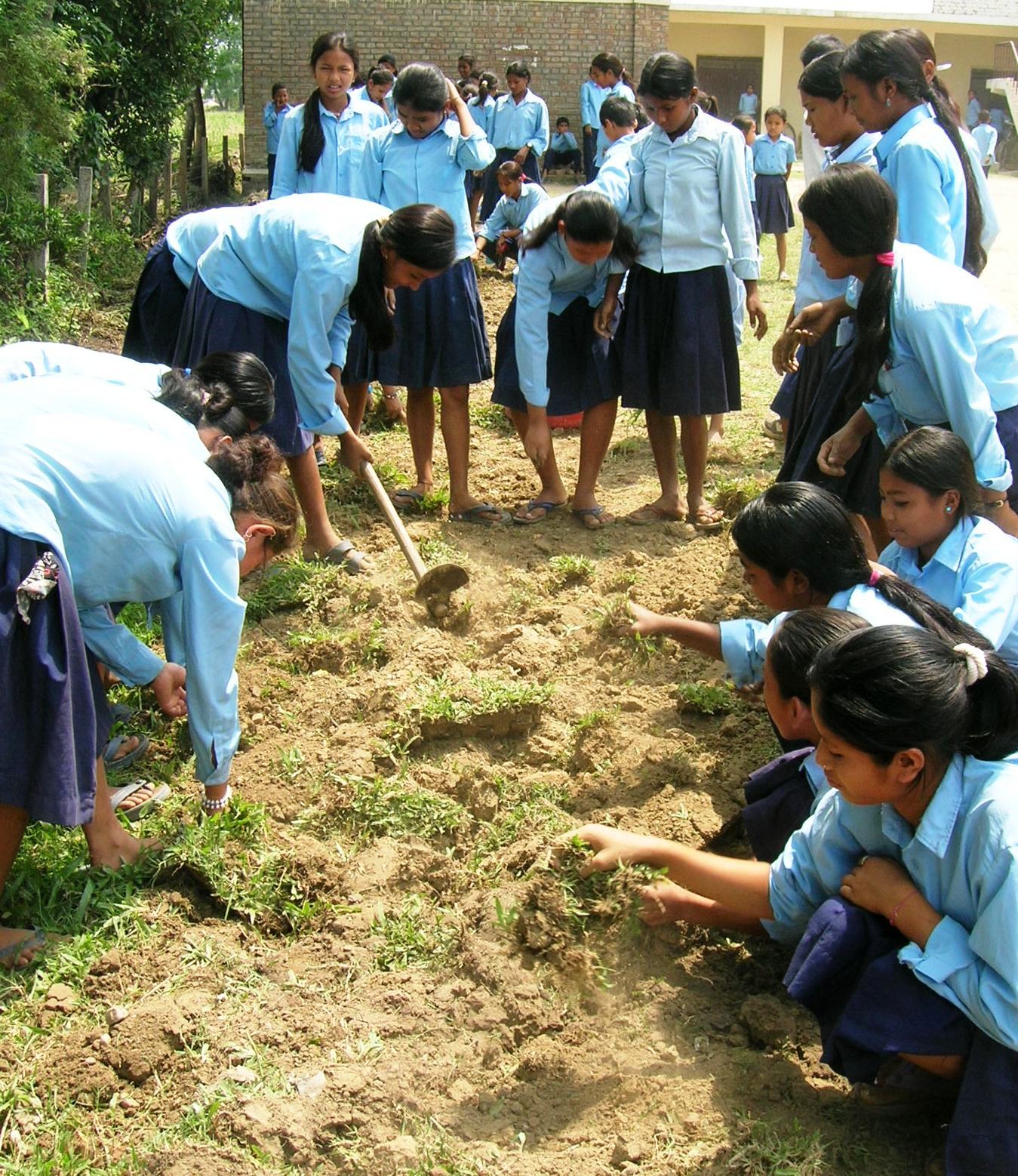 Despite stifling heat, the grounds were cleared of refuse and weeds and the earth was tilled by ‘green club’ students who carried tools from home (they all have tools from working in the fields). Some students, fueled by pride in their school’s garden, would spend their tiffin-time (recess) watering the trees and flowers.