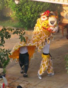 This morning, I am jolted out of sleep by a thunderous crackling and boom-boom of drums bellowing from the ground four floors below my window. Those sounds clearly aren’t heralding the arrival of any cute fuzzy rabbits; rather, I can tell that we’re being visited by dragons. I leap out of bed, grab my camera and watch the theatrical show unfolding outside: