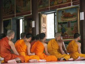 in the afternoon, I was told that Buddhists honor the life, enlightenment and death of the Buddha with offerings of alms to monks in the morning; while afternoons are devoted to prayers and drinks of water, Coke, Fanta and Sprite (yes, those drinks only, said the monk-boy). Indeed, when I peeked inside, I noticed that placed next to each seated person was one of the aforementioned drinks.