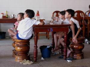 Fortunately, today’s rite of passage (do I dare call it a pilgrimage?!) – departing Cambodia, entering Thailand, departing Thailand, re-entering Cambodia – came off without a hitch. Were it not for amusing interactions I observed among the two heaping busloads of Russian tourists queuing ahead of me (easily identified because of the Buryat – Siberian – couple in their midst); the interesting story I heard about how the eight-member Mennonite family from Ohio came to live in Siem Reap; the cheerful antics of motodbup and taxi drivers hovering around me as I awaited a return call from Mr. Lee informing me how I would return to Battambang after the promised driver bailed; and the photo ops I enjoyed while snacking on a plate of tasty cooked vegetables, well it might have been a very boring day indeed.
