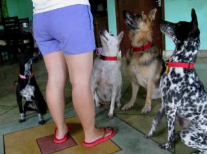 Whatever Cinta’s hindrances, she seems healthy, with no sign of pain. You almost forget she’s a 3-legged pup amongst her bigger, sturdier step-siblings; the hopping around necessarily slows her down a bit, but she never gives up. And when Cinta lies at my feet, on her backside, the right hind leg jutting out awkwardly, I rest my hand gently on that shorter limb, and in a whisper, remind her that she can do it all, but just at a slower pace.