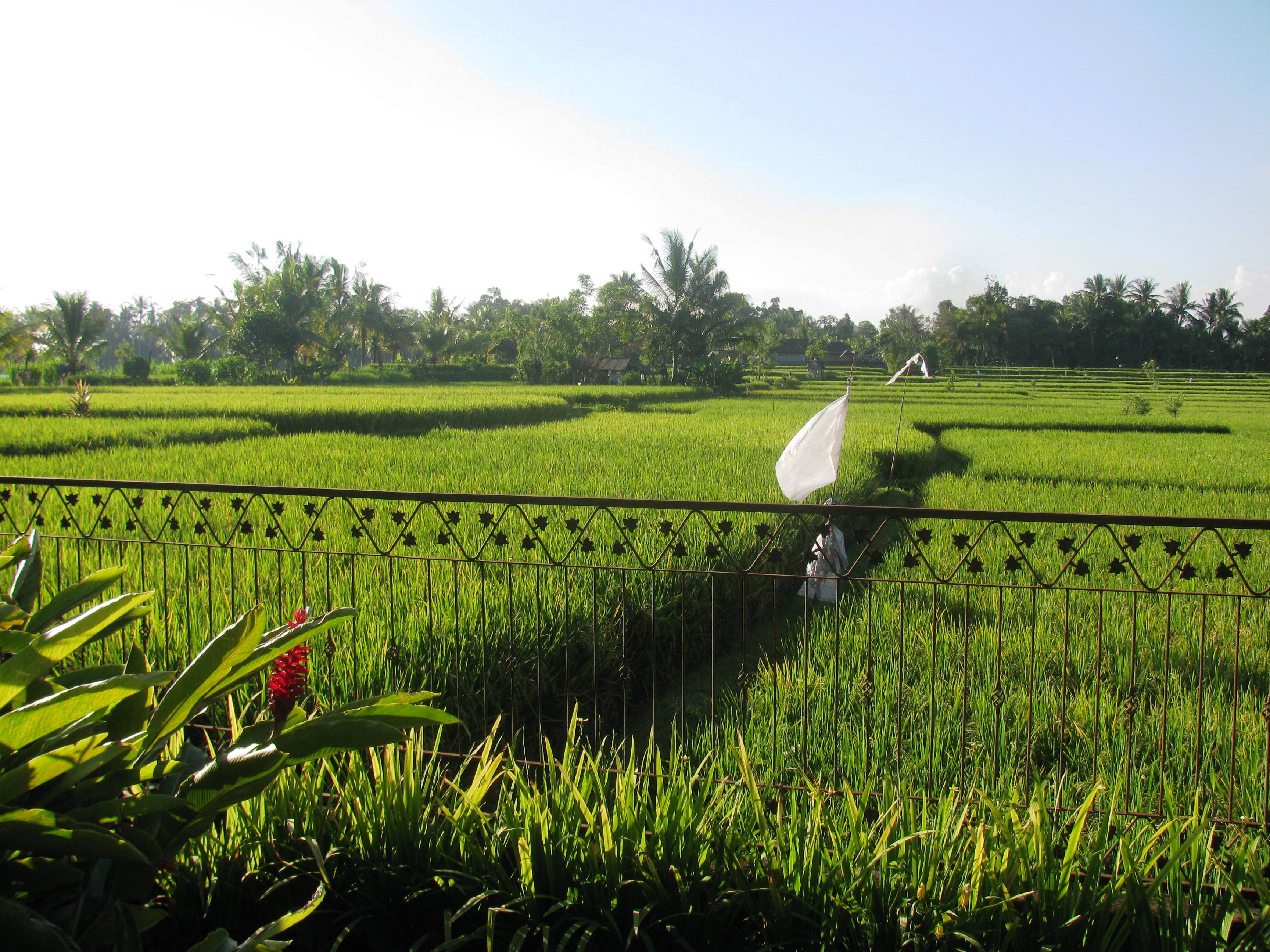 This is the view from the back terrace of a sprawling home encircled by rice paddies in a suburb of Ubud. I spent a few hours there today. It’s the place F calls home – but I’ll call her Joy (of Wood), because it’s an auspicious translation of her name.