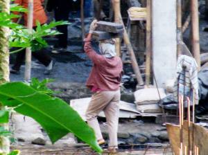 ed cold in my tracks at this sight: A small group of women of slight build – some well past middle age – lifting heavy boulders from a pile on the side of the road, settling one or more onto their heads and carrying them down a path, towards a construction site just beyond.