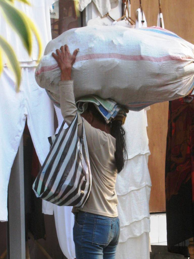 By now I’ve learned not to gawk in disbelief, because while men typically carry tools or ladders on their shoulders (they tend to be the lightweights), tradition and culture dictate that women do the bulk of the heavy lifting and carrying on this island – and nearly always on their heads.
