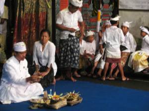 They certainly know how to whoop it up, these Balinese: Lights, music, action. And laughter, lots and lots of laughter. And knowing only a few words of Bahasa (Indonesian language) is no impediment to appreciating the scenes that unfolded in front of my eyes: The pemangku (priest) whose prayers and offerin