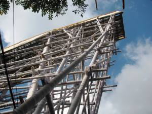 In this case, the towering structures have been under construction for weeks. Built from bamboo, wrapped up in miles and miles of white cloth, there are now three or four each soaring perhaps 20 meters or more into the sky. Awe-inspiring in size, grandeur and craftsmanship.