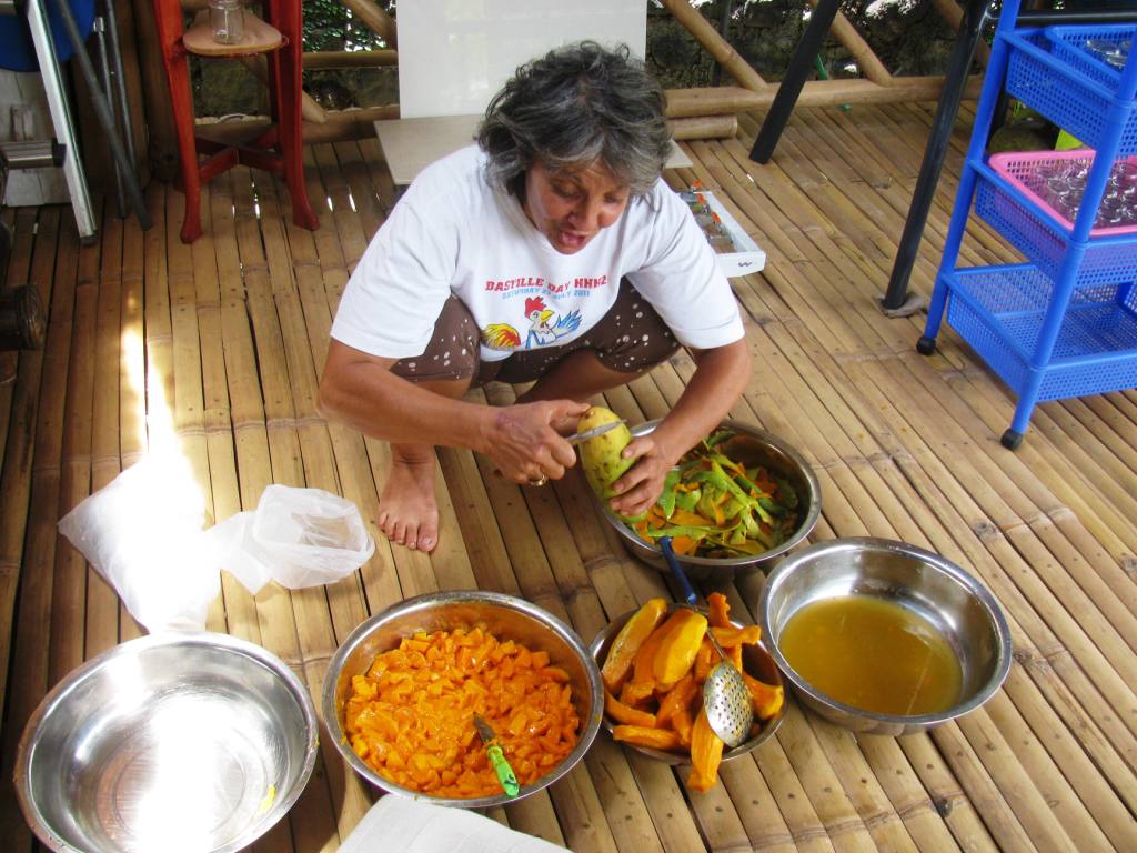 pacious garden, produce popping up here and there. After a tour, we settled down to work: peeling, shaving, cutting, chopping mounds of mangos. Massive mangos. Dropped into a pot, mixed with sugar, stirred to perfection for a homemade stash of jams.