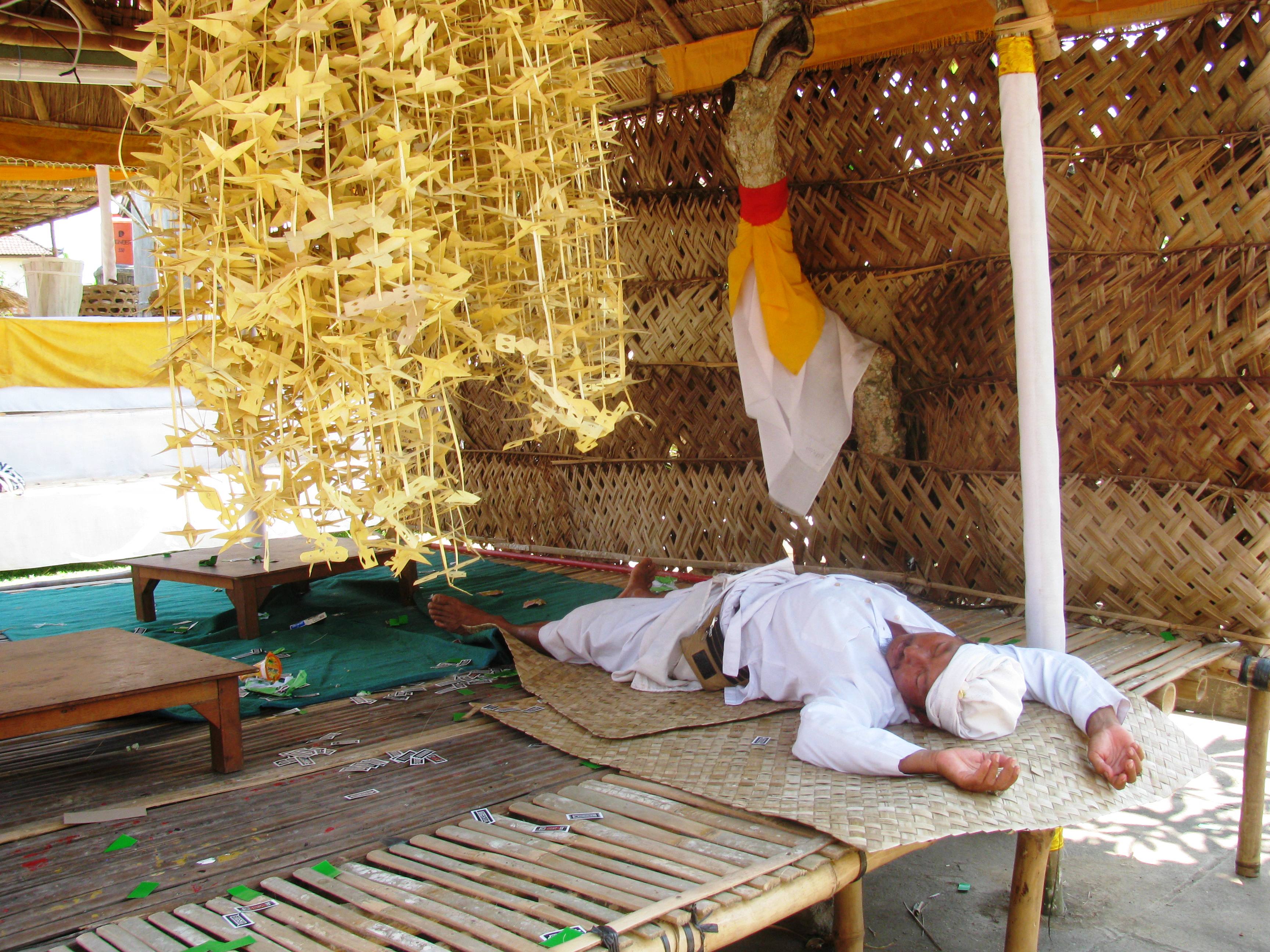 le grounds, we stumbled across the priest taking a nap. Maybe he was knocked out from the midday heat. But I was struck by seeing him lying there.