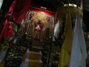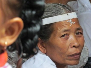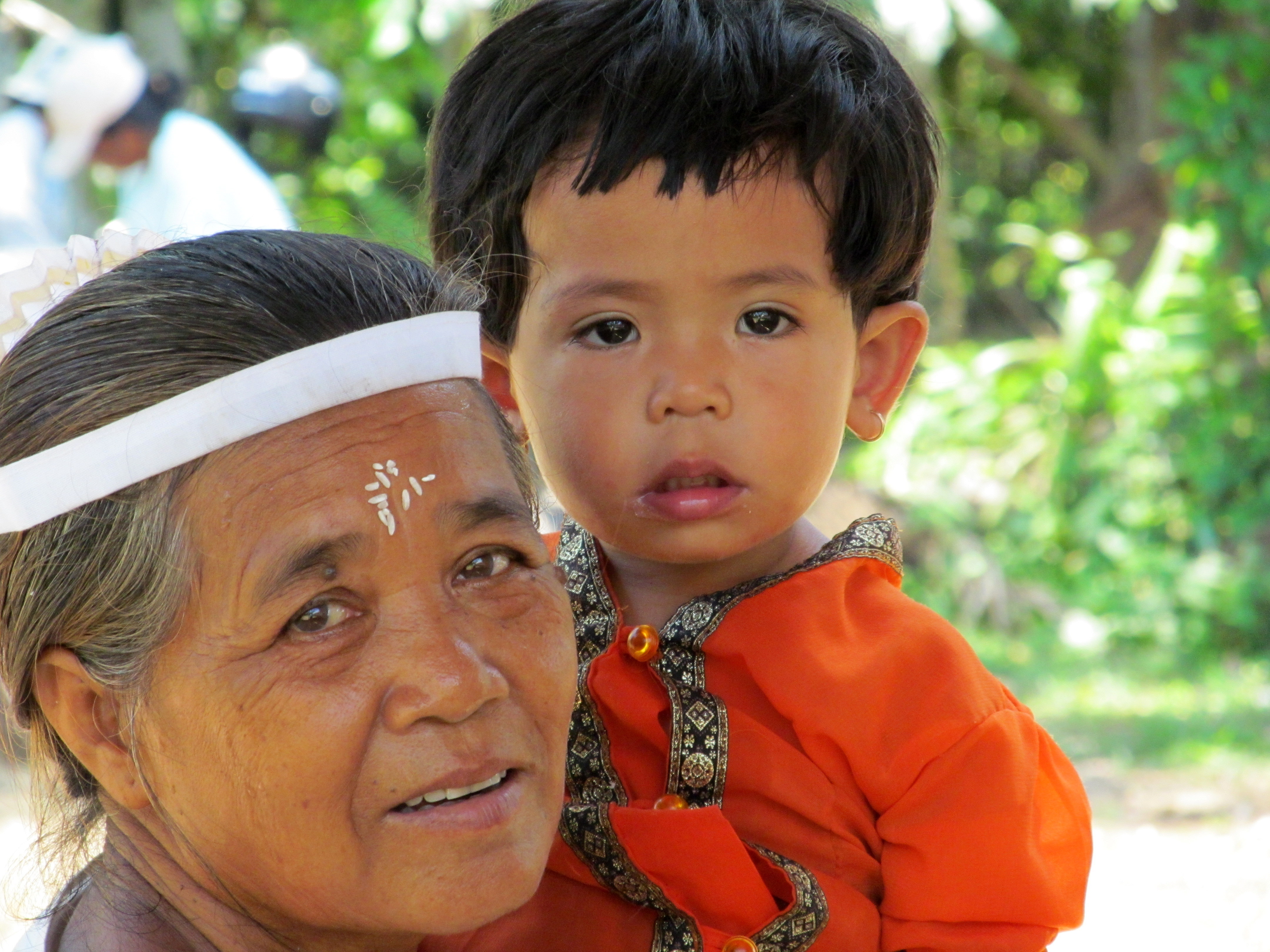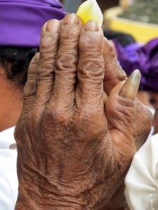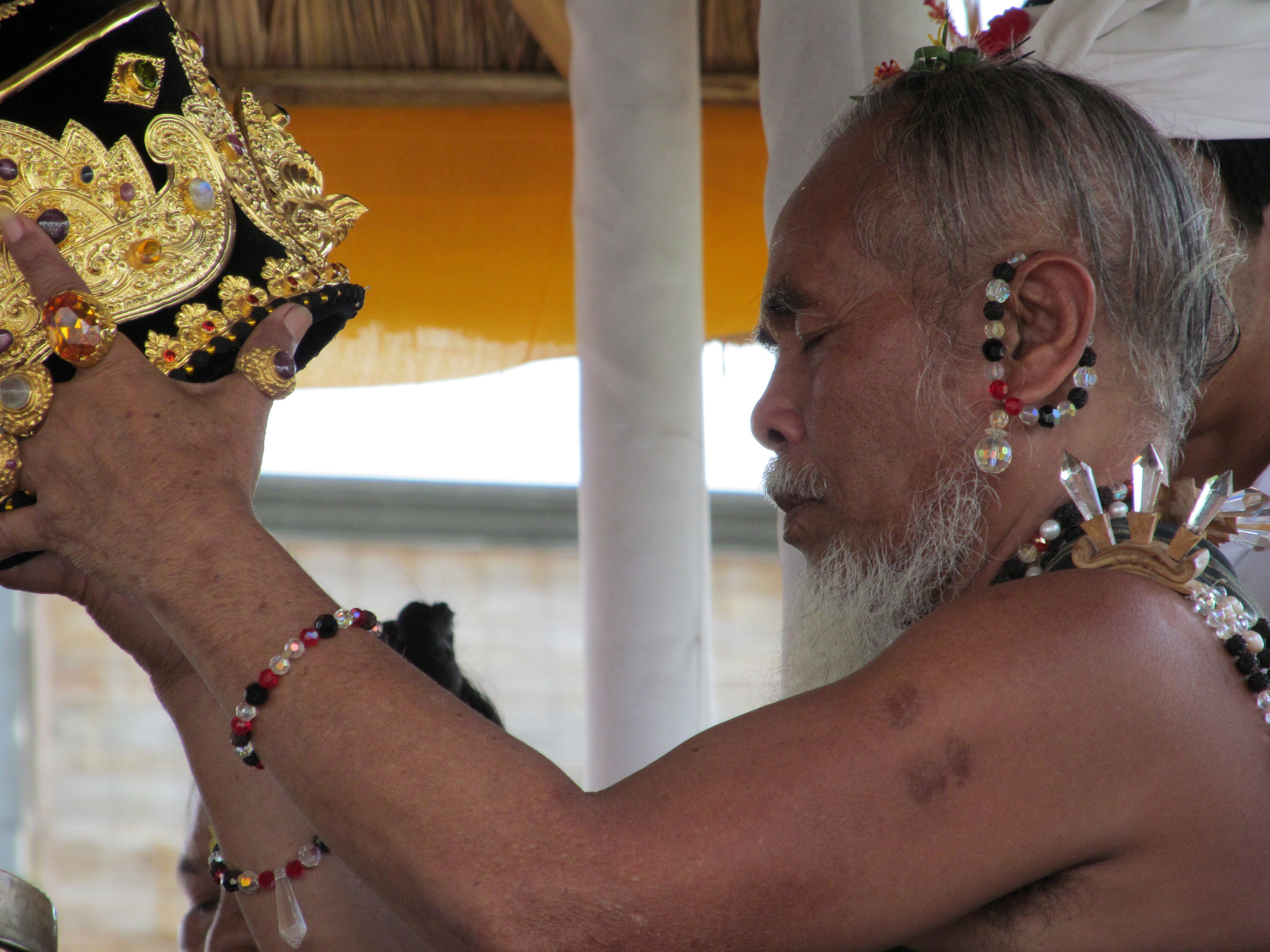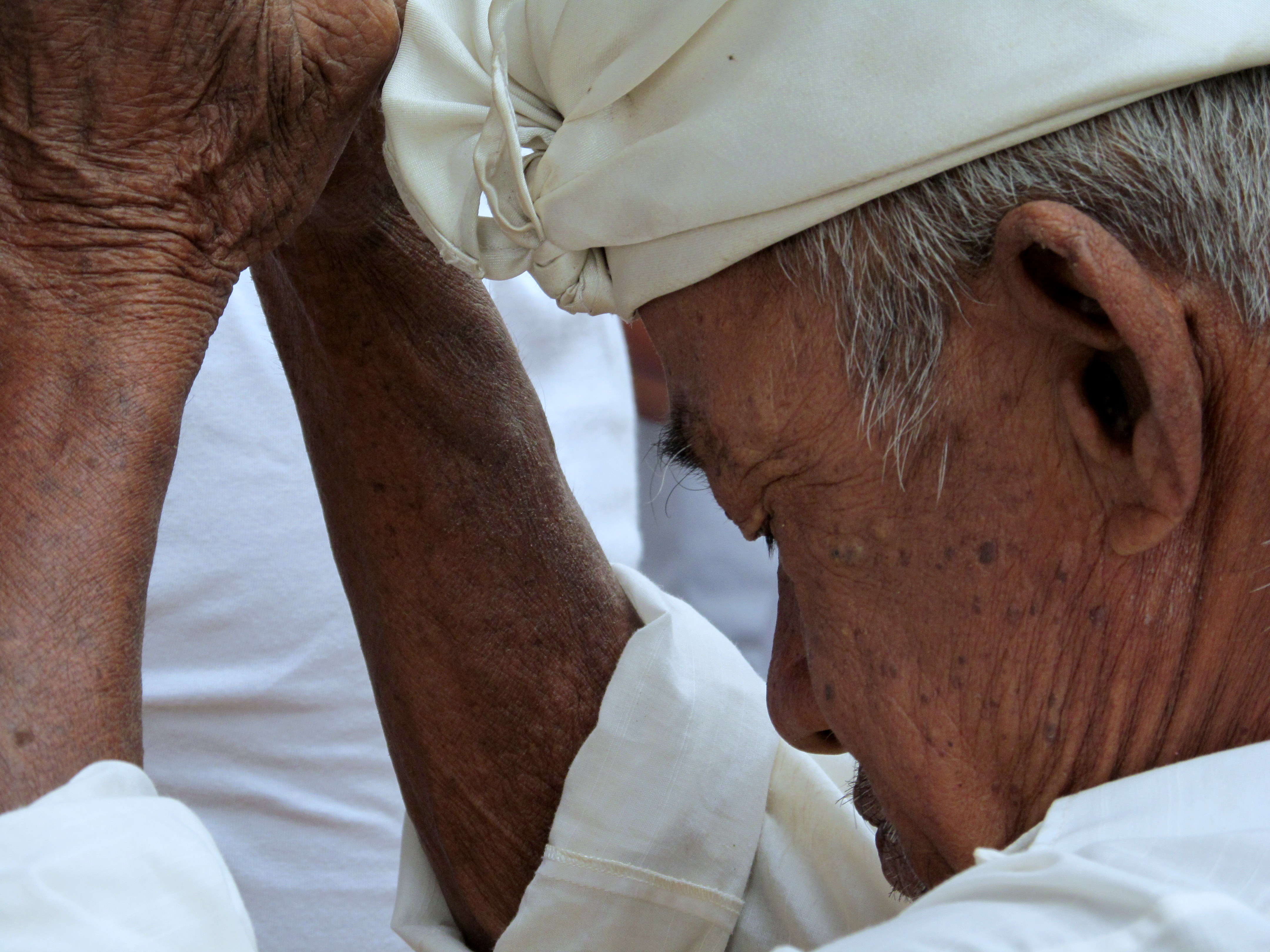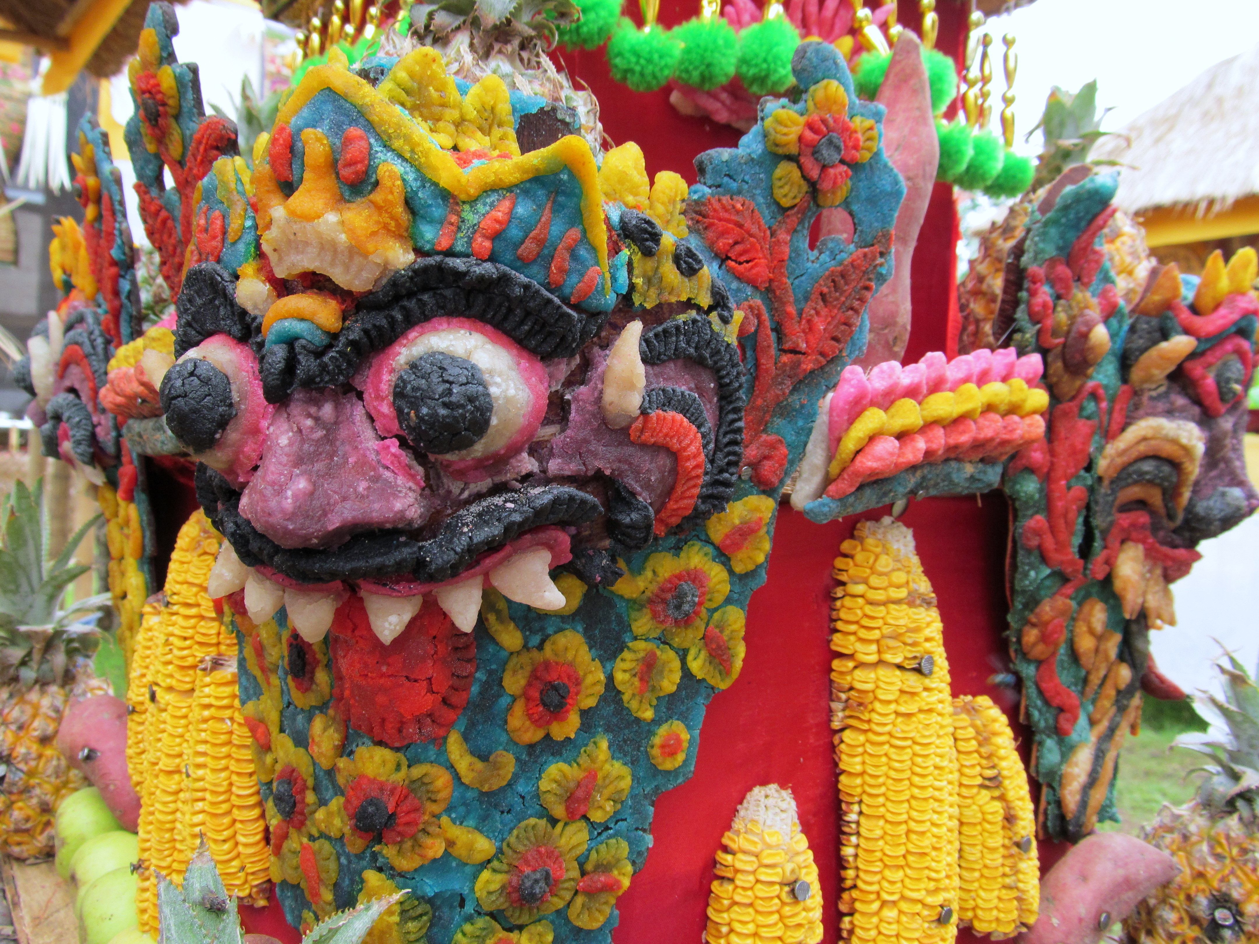 The spectacles, too many to list and explain, were wonders to behold (and occasionally participate in): Prayers. Offerings. Sprinkling and drinking of holy water. High priests. Low priests. Invited guests from around Bali. Music. Gamelan groups. Dance. Dance. And more dance. A sacred (i.e. no-filming) dance too. Burial of offerings and valuables in temple ground. A parade with, and slaughter of, sacrificial animals – and not just pigs! Food & feast: Skinned, chopped, cooked – spiced up with mountains of garlic and onion. A lottery. Gambling and card-playing. Cock-fighting. Laughter. Speeches. Gratitude. Tears.