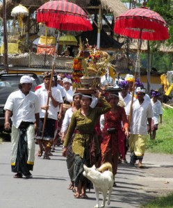 Another day, another ceremony on the island of the gods. Today the Balinese gather at temples to celebrate Pagerwesi – which literally means iron fence. It’s the day when people pray for awareness and strength in defending themselves against evil forces in the year to come. In the middle of yoga class, the percussive sounds of gamelan music began to ring through the air outside the studio.. not an unwelcome auditory addition to our meditative practice.