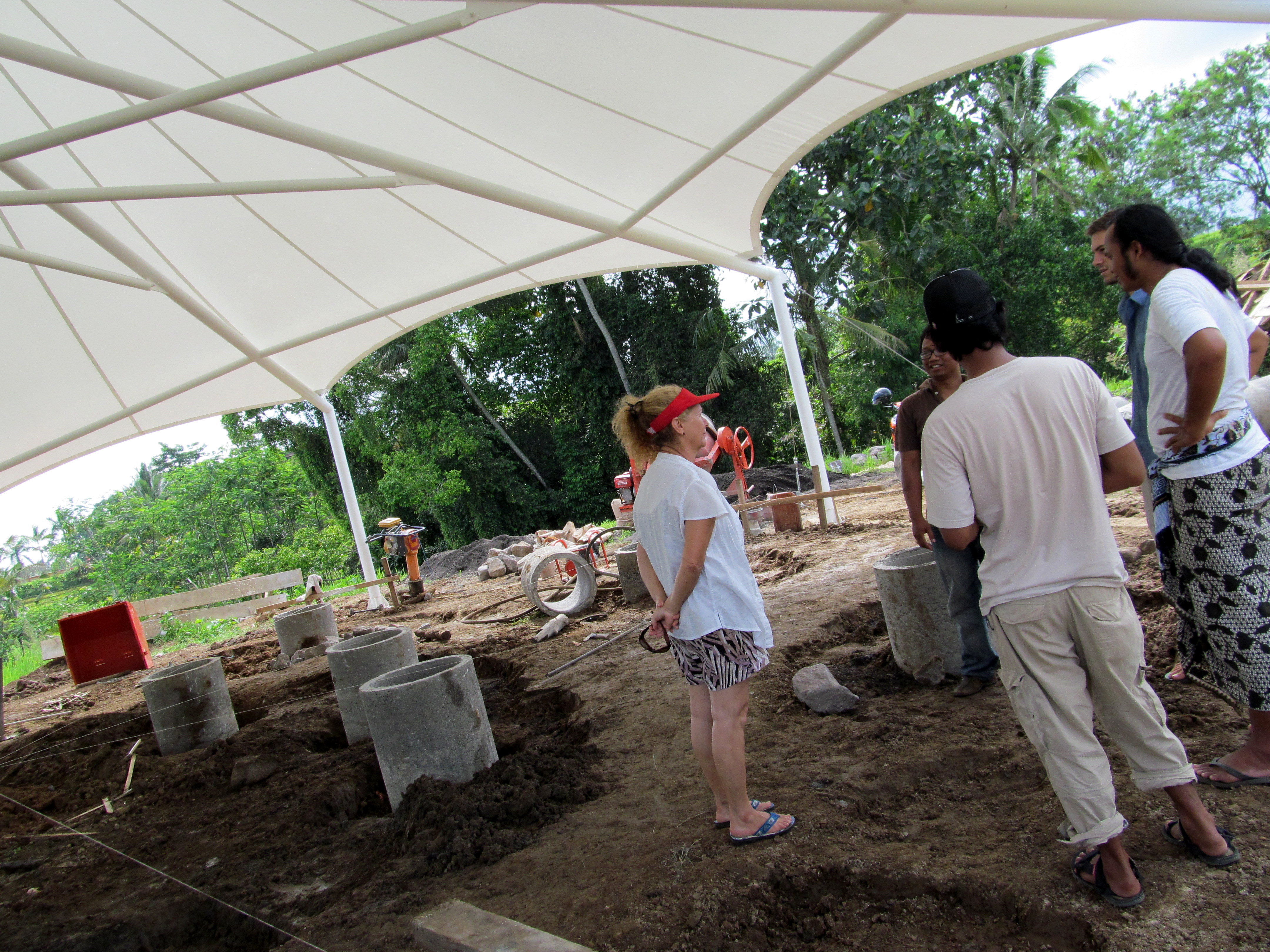 As the crow flies, Penatahan is probably less than half an hour’s drive northwest from Ubud. But with Bali’s road networks being what they are, it took us – Patricia, Sangtu, Eric and I – more than an hour to get here last weekend. Here is where, on a large patch of land leased (long-term) from Pak Putu, in the shadow of the Batukaru mountain range and the holiest of Bali’s peaks – Mount Agung – Patricia is building a sile
