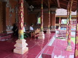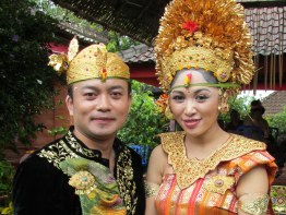 st on Balinese traditional (but more elegantly cooked and presented) dishes. The groom is, after all, an “Agung”, considered royalty (or at least aristocracy) in Bali; the extended family lives in a Puri (palace) with its own grand temple and many extensions and new rooms for a growing family. It’s by far the most ornate and luxurious wedding venue I’ve seen here thus far. They even have a musical trio (a la Bali) playing bamboo instruments for guests while they eat; rare in Bali, but consistent with the more sophisticated tastes of the upper castes.