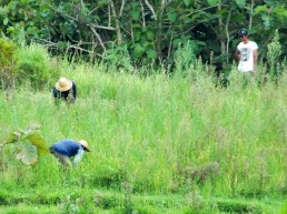In the late afternoon, I set out for walk in the banjar – population unknown (but no likely more than 100). As I reach the bottom of the driveway, I see the petite figure of Ibu coming toward me. She’s without a doubt the grand dame of this hamlet; despite her shriveled and shrunken body, I bet she is the oldest and hence most respected elder of the community. She recognizes me because we first crossed paths two days before; and her face