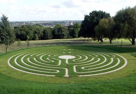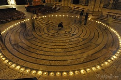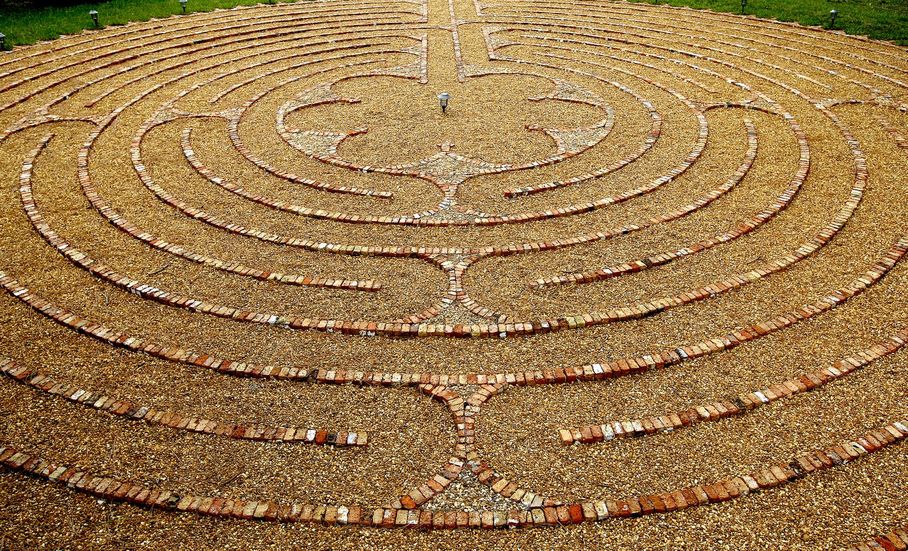 A labyrinth is a single path, comprised of passages marked by borders that wind their way along a circuit leading to a center. You enter and exit from the same point, with borders keeping you on the path. You can’t take a wrong turn, and you won’t get lost. The path, long used as a tool for personal and spiritual transformation, leaves you free to do nothing more than to walk and meditate. When you reach the center of the labyrinth, you’ve gone half the way – a moment to pause, reflect or pray. You then need to turn around and walk out. It has been said that the certitude of the path frees you to focus on contemplation instead of navigation.