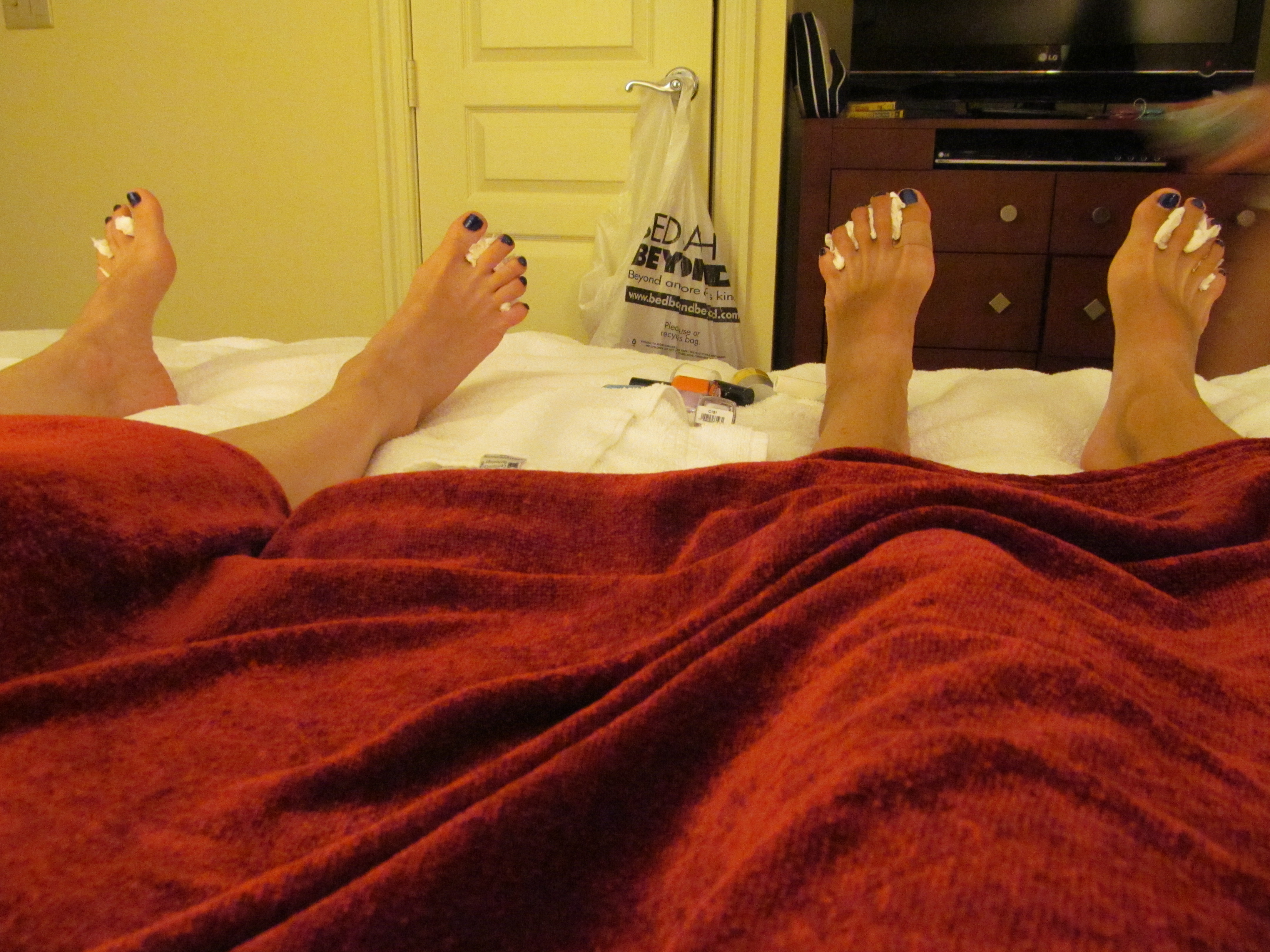 I took my first bath in over a year, my body delighting in the underwater bubblicious massage. I got buried in the sand (up to my neck). OJ and I were treated to a pedicure while watching YouTube videos, and I did yoga stretches to a soundtrack of morning cartoons. I bought a bottle of Aussie wine for $5