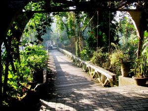 The iconic and once-picturesque Campuhan suspension bridge, built by the Dutch in the early 20th century, lies in a valley at the confluence of the Ayung and Wos rivers, amidst an old-growth jungle at the western edge of Ubud. This footbridge, onc