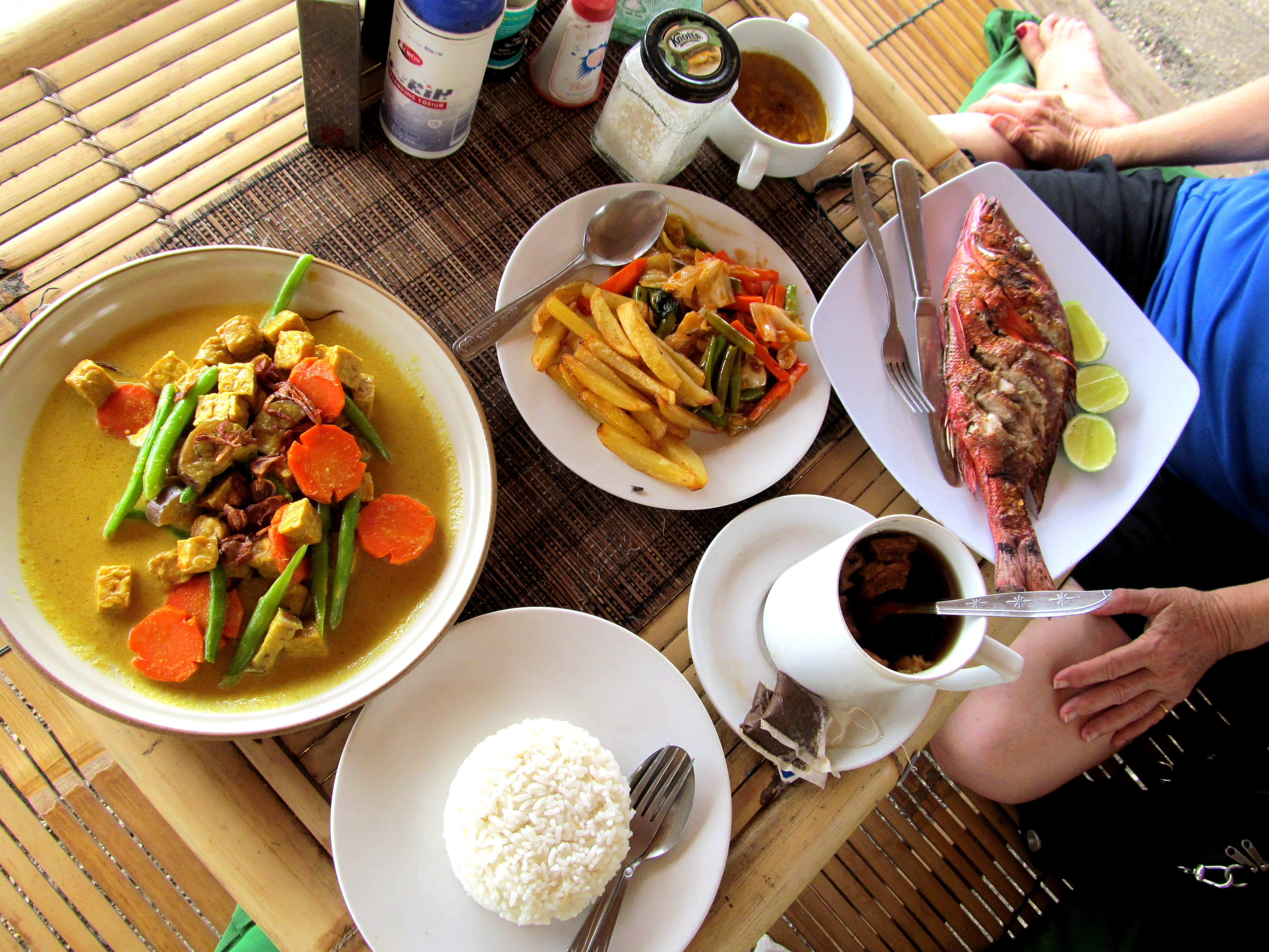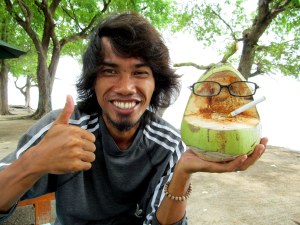 nut – and his improvised stand, next door to our guesthouse, is the only one we’ve seen on the island. Ipan, flashing a million-rupiah smile, works at the nearby Ali Baba restaurant and feeds us our near-daily ration of fresh fish (yum – snapper!) or vegetable curry.