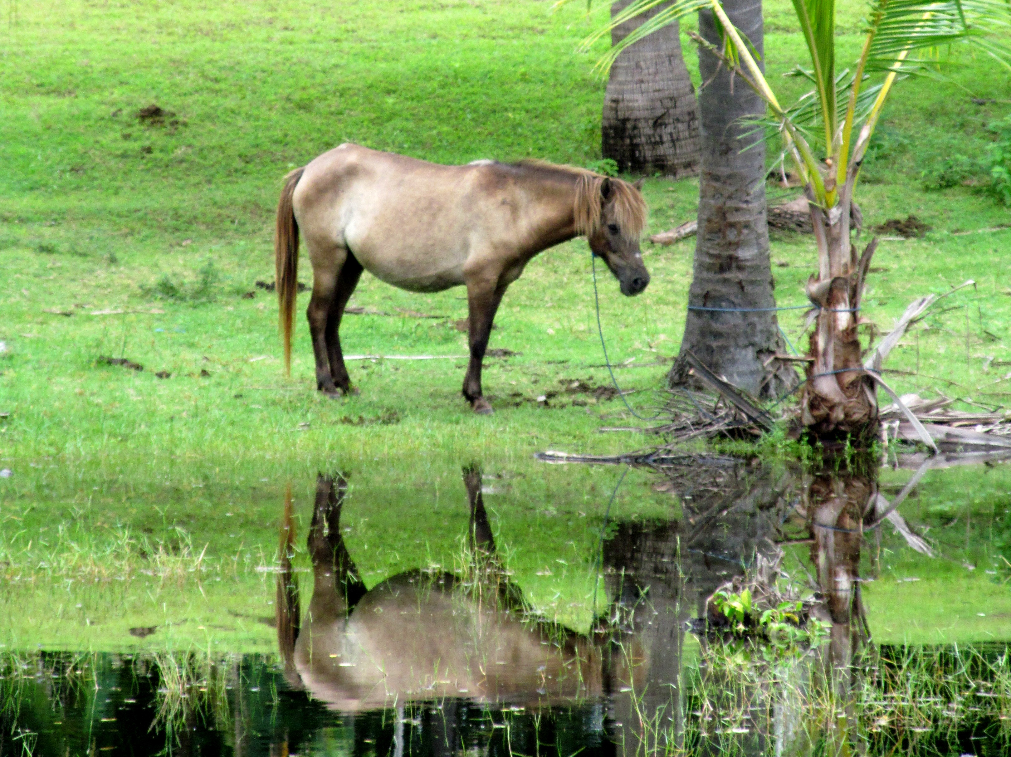 After a couple of days, I decide it’s time to join B on her daily walks around the island. Sounds adventurous, but in fact, the entire periphery of Gili Air can be walked in just over an hour –and even then, you can dilly dally here and there. Cows and horses graze in fields, all lush but some also flooded. Coconut trees tower above, sway