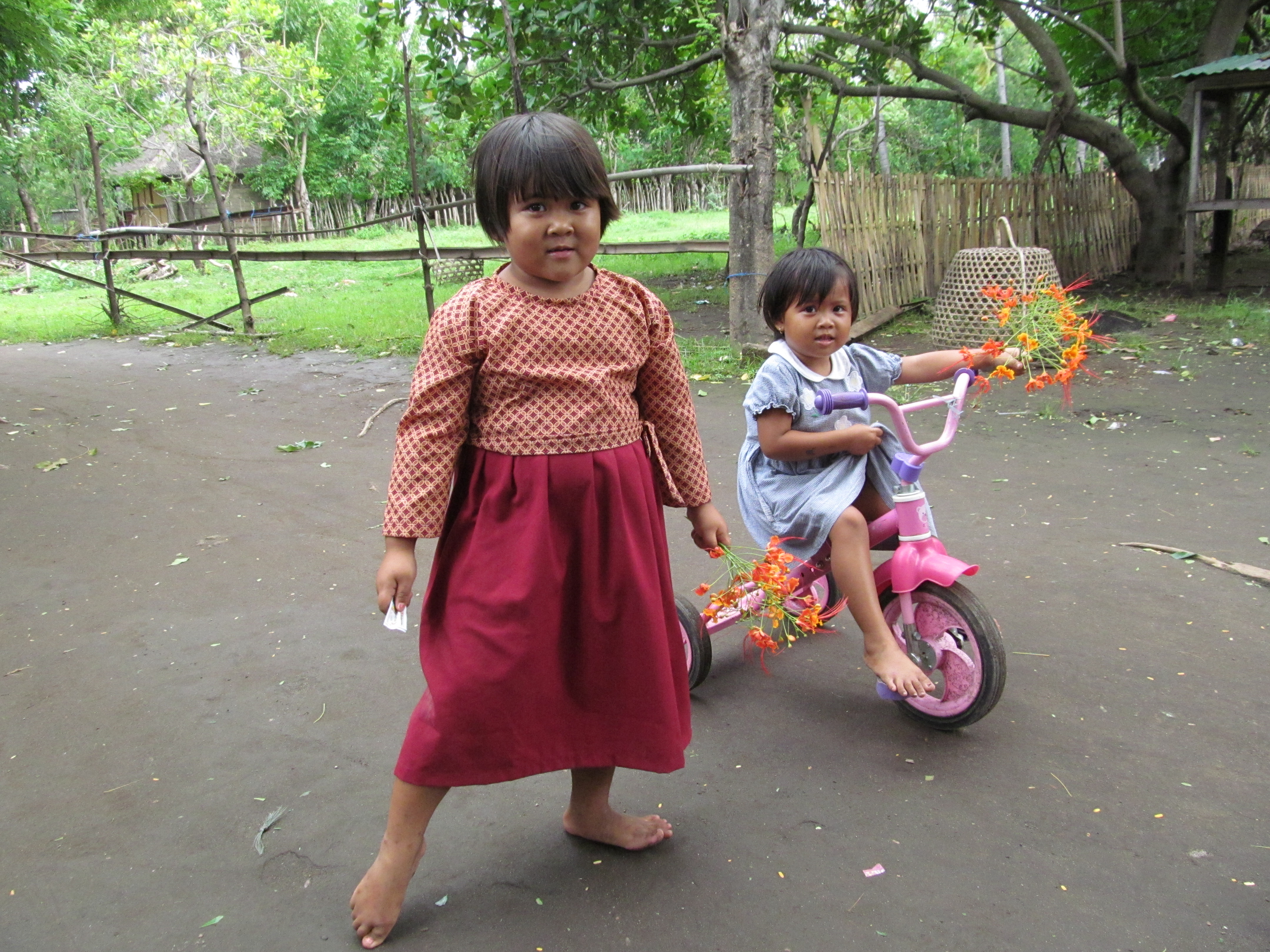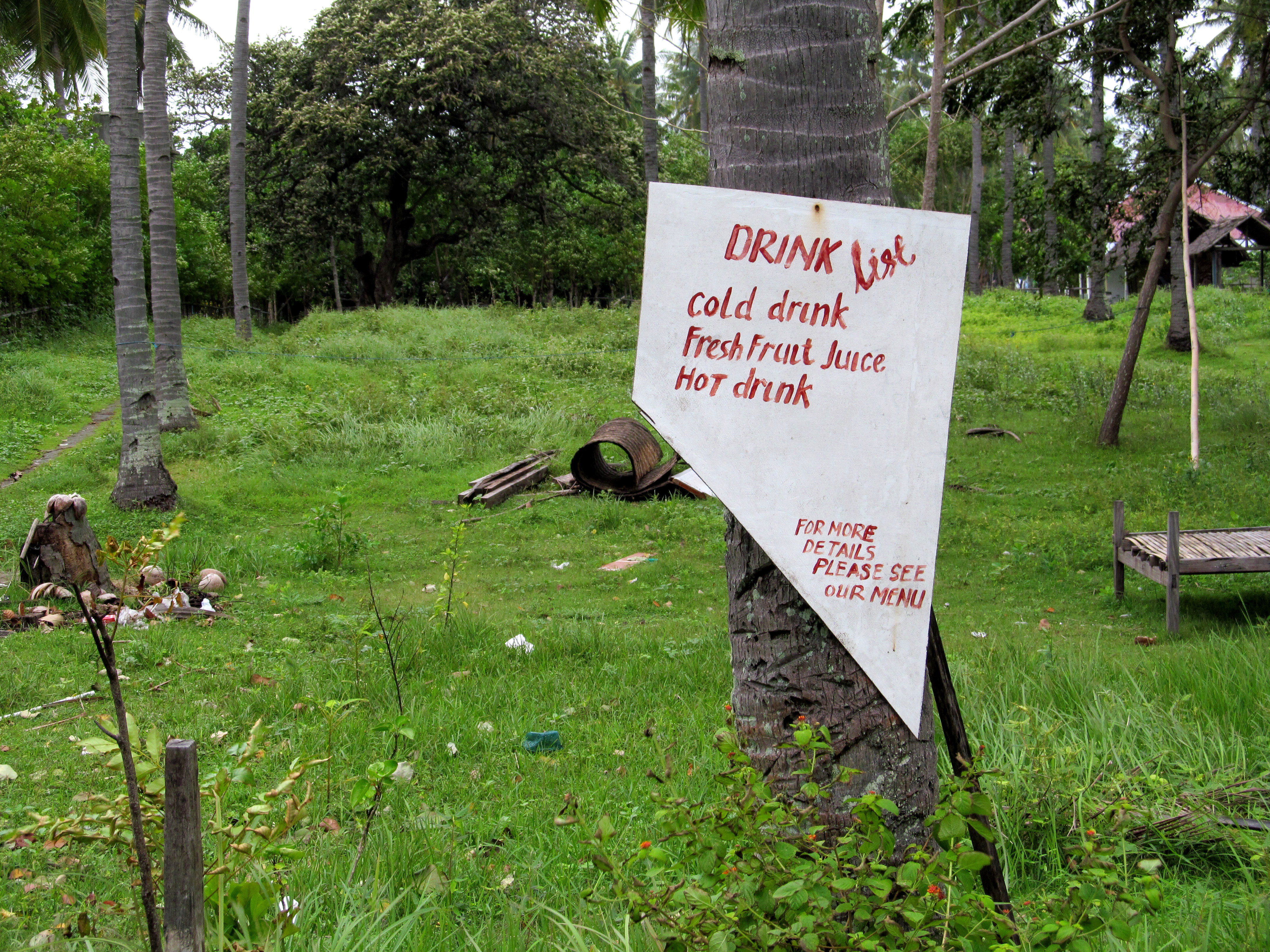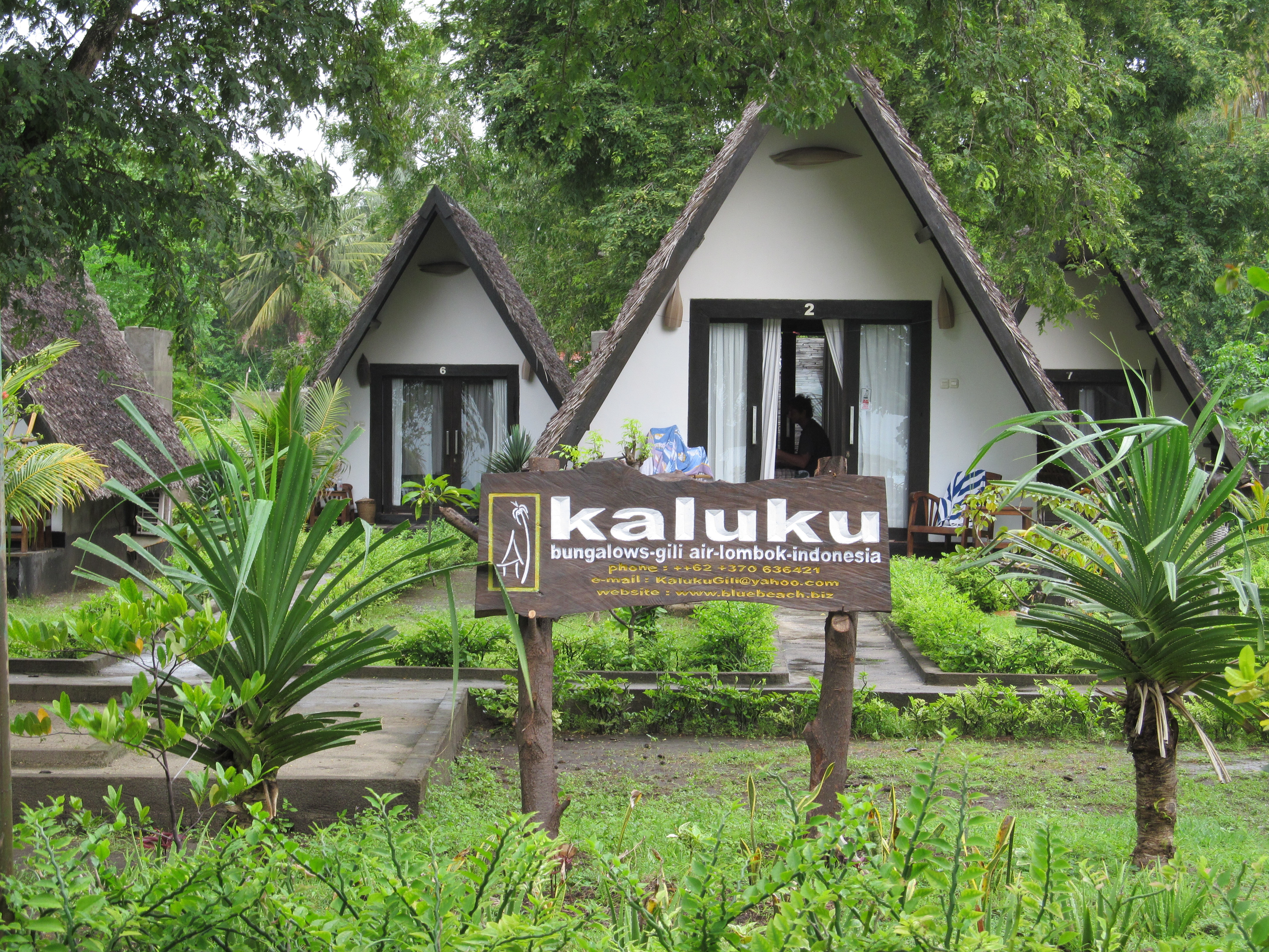 The staff at our guesthouse, Kaluku, is always pleasant and helpful. When the water stops working in our outdoor shower, the young guy assures me that it will start again – just as soon as the water tower fills up again (ah yes, the power outage has played havoc with just about everything). But there is nothing they can do about the glass doors that rattle against the howling wind every night, waking us from sleep, sending B into mild hysteria such that she shoves her suitcase next to one set of the doors and the upright floor-fan against the other. I lie on my back praying that we be spared from tsunamis, earthq
