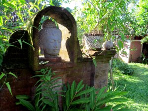 helves overflowing with must-read books about Bali, travel and lives lived adventurously; cookbooks with Indian and Indonesian recipes, manuals about pets and permaculture. The place brimmed with Buddhas, nagas, crystals, mobiles, Sanskrit paintings and wall hangings. Pillows to prop myself on and recline on while writing and reading; a day-bed for lolling about and watching kingfishers perch nearby and swallows swoop by in the afternoons. A proper kitchen – with Wayan