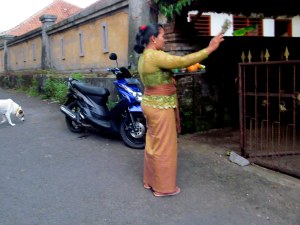 And even after mama dog, her protective instinct in high gear, managed to bite at least five neighbors, triggered anxiety and fear all around and ultimately carried her pups off to a family compound nearby, leaving a sense of imbalance and now what? in the air – still there was Wayan dutifully placing offerings all around the now-emptied garage, clearing the space and shooing away any potential lingering evil spirits.