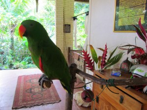 but despotic parrot named Chiko emitted the most earth-shattering squawking known to man (he’s an Eclectus after all) – still I was thankful that we finally arrived at a compromise; I patiently fed him miniscule seeds and nuts, by way of plastic measuring spoon, through a small opening in his cage (where he tried but couldn’t nip at me) while reminding him to put a lid on the shrieking as I did so