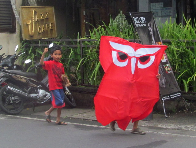 th of Ubud) on her way back from class in Denpasar, when she suddenly felt something catch and tighten across her throat. She braked quickly, just in time to prevent serious injury. Turns out a string tied to a kite had fallen limply across the road from where a pair of boys was standing, and she, unwittingly, rode right into their (unintentional) trap.