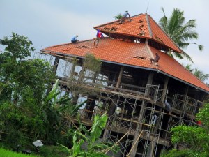 These sudden, unexpected departures made me wonder: sure, it’s a construction site, with bamboo poles, wood posts, panels, nails, bolts and chain-smoking Javanese laborers everywhere – if you saw them balancing themselves on slanted roofs in nothing more than flip-flops or bare feet, you’d certainly call THAT living on the edge!