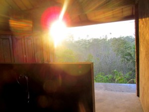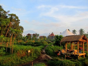 There are rice fields and mountains, blue sky and sunshine, low-lying clouds, jungles and forests nearby; there are coconut, cacao and papaya trees, a gargantuan organic garden sprouting like mad – broccoli, kale, rosemary, eggplants, dill.. never mind a whole host of medicinal plants.
