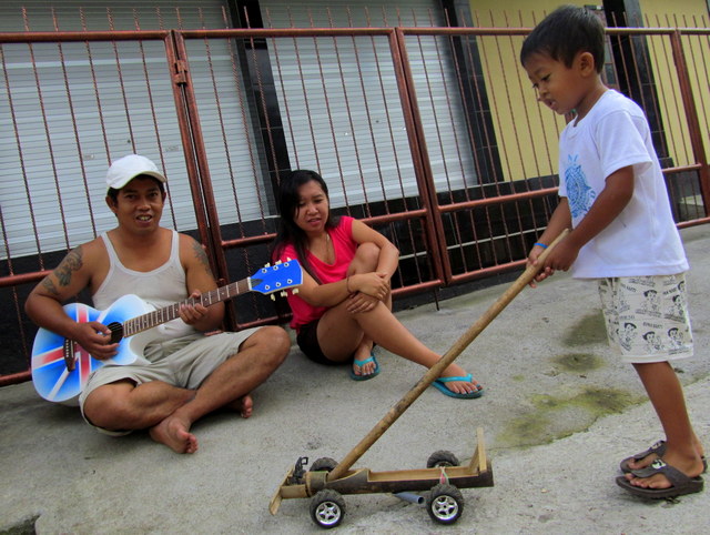 In the village, rice farmers lumbering through in rubber boots, pirated brand-name t-shirts and bamboo hats; 5-year old Rizky playing with his traditional Balinese racing car (of bamboo, hand-crafted by his guitar-playing dad); Yupi inquiring ab