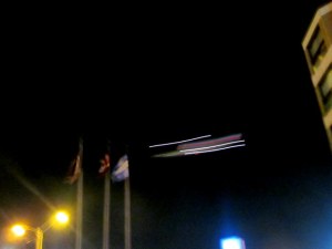 I don’t notice immediately but the women are standing up, still talking. I try to take a picture, but something isn’t quite working with my camera. I fidget and pull out the batteries, then replace them, and with the camera seemingly back in working order, I put the lens up to my eye and am shocked to see a massive brick wall on the other side. I lower my camera and look up, in amazement, to see that the diorama has disappeared, and in its place have sprouted (back?) all regular-size buildings in front of us. I ask the woman closest to me what happened and she says that the diorama was no longer needed, so the technician shut it off by remote.