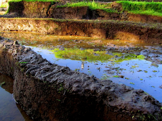 ani’s father (in a barely coherent mix of Balinese and Indonesian) – go straight on the path, turn left at the cows and you should see him there – I managed to find Ketut, dressed in his finest farmer gear. I followed him out of the field, down to his shed where he changed into a new set of clothes, grabbed a black pail and we traipsed down to… his fish pond.