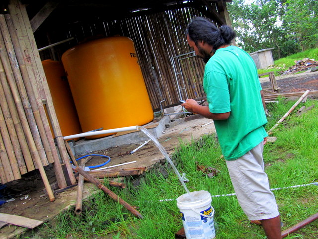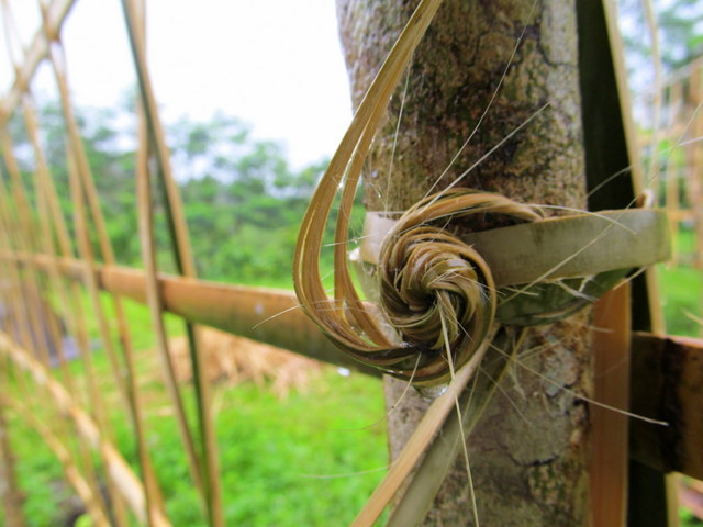 He walked me through the jungle, knife in hand, demonstrating – through show, tell and sounds – how not all bamboo is created equal. Four species thrived in the jungle surrounding the retreat, another two beside his home. The wood and fibers of each species, and within the species, whether young, ‘teenager’ or old, had its own purpose; young bamboo tali is used to tie poles together while old and sturdier tali is used for building houses and b
