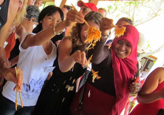 at peoples’ well-marked badges confirmed that people were originally from as far away as Greece, Poland, Switzerland, USA, Canada, Taiwan, Australia, Singapore, Germany, Italy, France and Russia. A microcosm of the world, this little Balinese hillside town is, most certainly deserving of an honorary title for UN ob