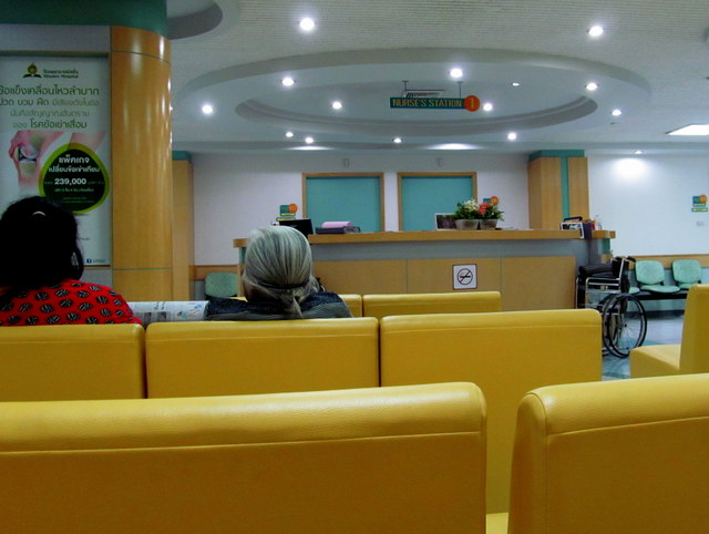 so, what better place to spend most of my week than at the oh-so-aptly named Mission Hospital. Far from the madding crowds of Kao San Road, in fact far from any foreigners’ presence (evidenced by the blatant absence of 7-11s and Starbucks in the neighborhood), this hospital has a church on the grounds and, more pertinently for me, an American physician on its staff who had been recommended by friends living in Bali.