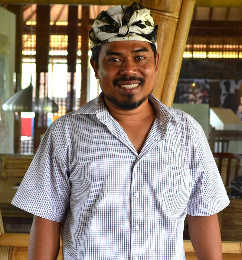 With a trimmed beard and mustache, the tanned Gandra cuts a striking figure himself when we first meet; he is dressed in traditional garb, wrapped in a double sarong, with a traditional udeng (head-piece) firmly placed on his head. As he glances out to a grassy space, Gandra’s manner is casual yet serious. But then, with a gleam in his eye and a smile spreading across his face, like a sneaky fourth-grader with something hidden up his sleeve, he hints at bigger things to come.