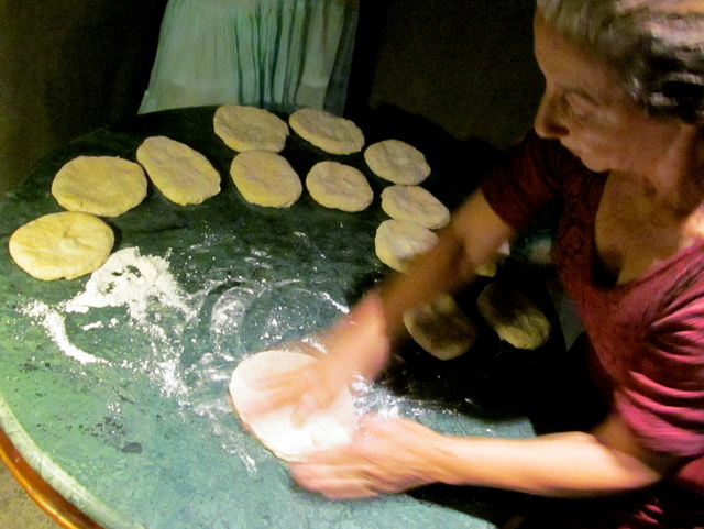 A rolling pin and freshly kneaded whole wheat dough (looking a little like pita breads)…