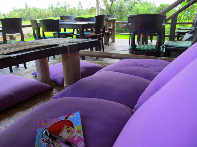 Even physicians and surgeons, who are familiar with my ‘case,’ who have seen reports and x-rays and cat scans and MRIs, even they cannot believe. But, but, but… how can you travel if you cannot sit?! Please, don’t get me started – unless you want a detailed play-by-play: I squat, I crouch, I kneel, I lean, I recline, I sway and I lie down. (Which is why I love some of Ubud’s restaurants, because I can slip out of sandals and recline on large puffy pillows to my heart’s content!)