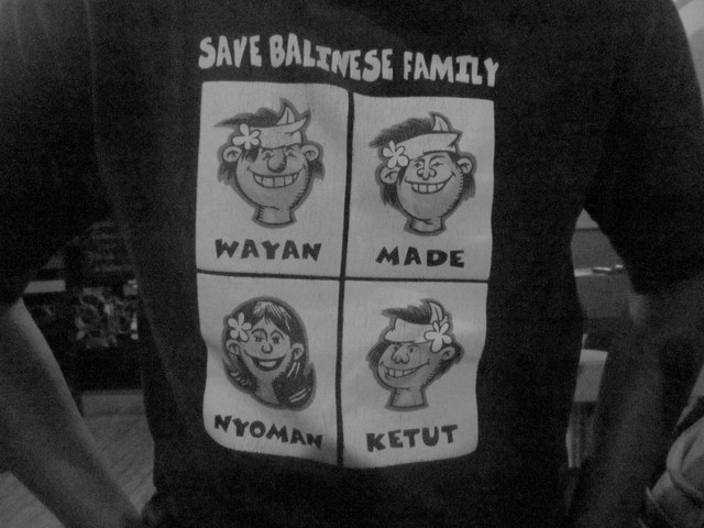 There’s something rather quirky, almost surreal, about this unique naming phenomenon… In fact, to tease them a little (and how the Balinese love to laugh), I’m tempted, the next time I return to Bali, to head out of the airport and into the frenzied crowd (comprised mostly of Bali’s tourist-hungry taxi drivers), wearing a t-shirt that simply reads: Dimana Wayan? Where’s Wayan?