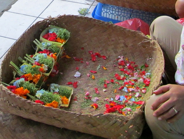 I don’t think that Balinese spirituality is going awry but I do think that many more Balinese women are working outside of the home and they just don’t have time to spend on the daily weaving baskets, gathering flowers ritual. Something has to give. Having said that no self-respecting Balinese Hindu woman would dream of not making her own decorations and offerings for the major festivals like Kuningan and Galungan or indeed for weddings, cremations births etc.