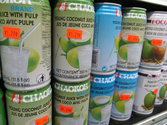 In a store today, I spied these cans. Many others also. A veritable explosion of coconut- and other tropical-fruit-based drinks have permeated the Western supermarkets, health food stores, vegetarian restaurants, resorts and yoga studios. They are EVERYwhere.