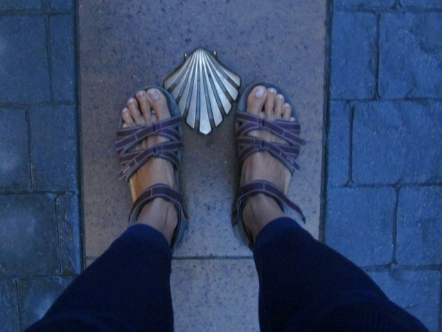 Less risky to expose myself to ridicule on the Camino (than in the urban realm); people are dressed up in all sorts of weird and wacky get-ups! I think Bali has spoiled us.. not so easy (thankfully!) to imprison ourselves or our feet anymore 😉 Can’t wait to get back into sandals.. and WALK again.