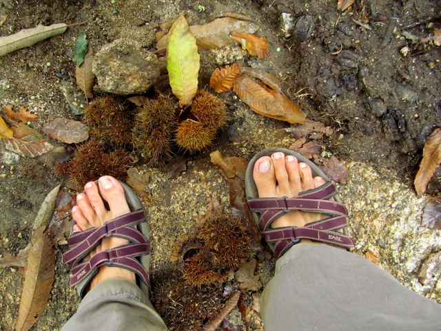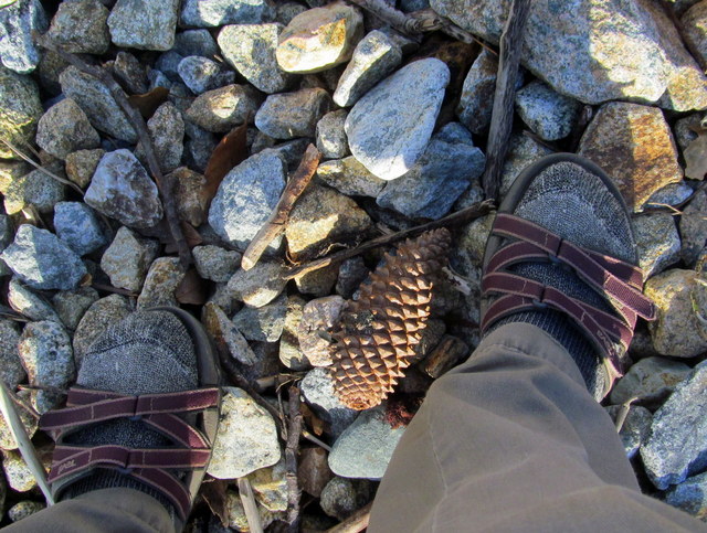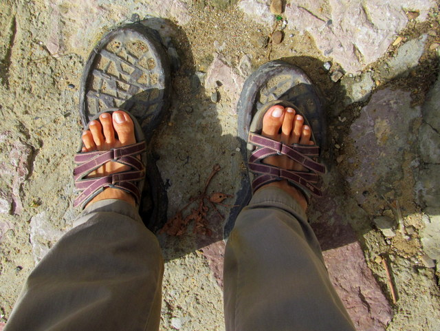 If weather permitted, I wore the TEVAs barefoot. The soles of my feet were closer to touching the earth than they’d been in boots; and I felt as grounded as possible (except if I were to have walked barefoot). When the chill set in, I did the unthinkable, certainly in my niece-the-fashionista’s eyes: I Wore Socks. Yes, I did.