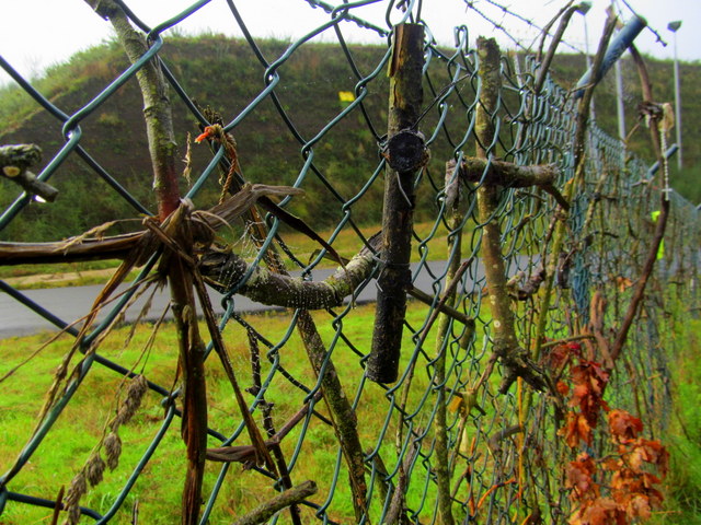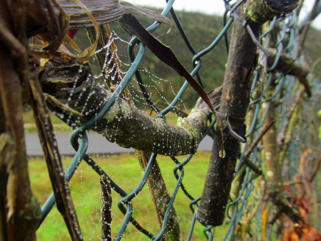 Intertwined between diamond-shaped links.