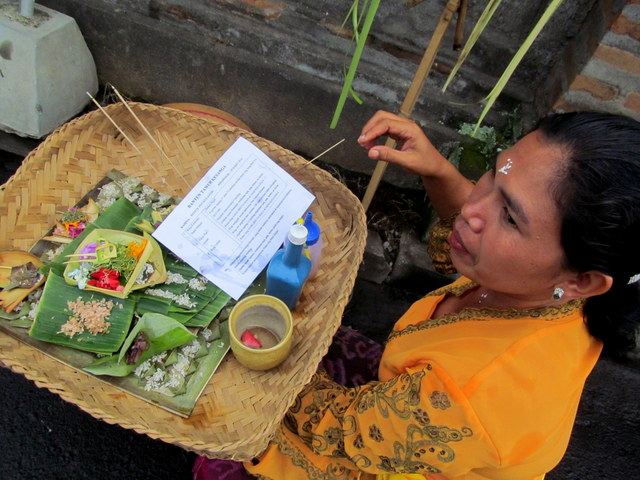 By the time the processions end, the precisely-made offerings – with burnt coconut husks, flowers, eggs, fruit and rice – have all been placed on fanciful trays, shrines and on the street; the ogoh ogohs are set alight, the locals and travelers turn in for the night, the streets are strewn with used plastic bottles and cups, many lights switch off and the usual rumbling of bikes and cars winds down.