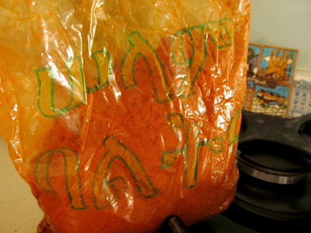 *Shiro (wot) is a traditional Ethiopian dish; a mixture comprised of chopped onions, garlic, tomato sauce (sometimes meat or chicken) and a smattering of chick pea flour, its light orange color (an almost exact replica in color and texture of the processed cheese powder that is stuffed into every package of Kraft Dinner) an indication that berbere spices have been added.
