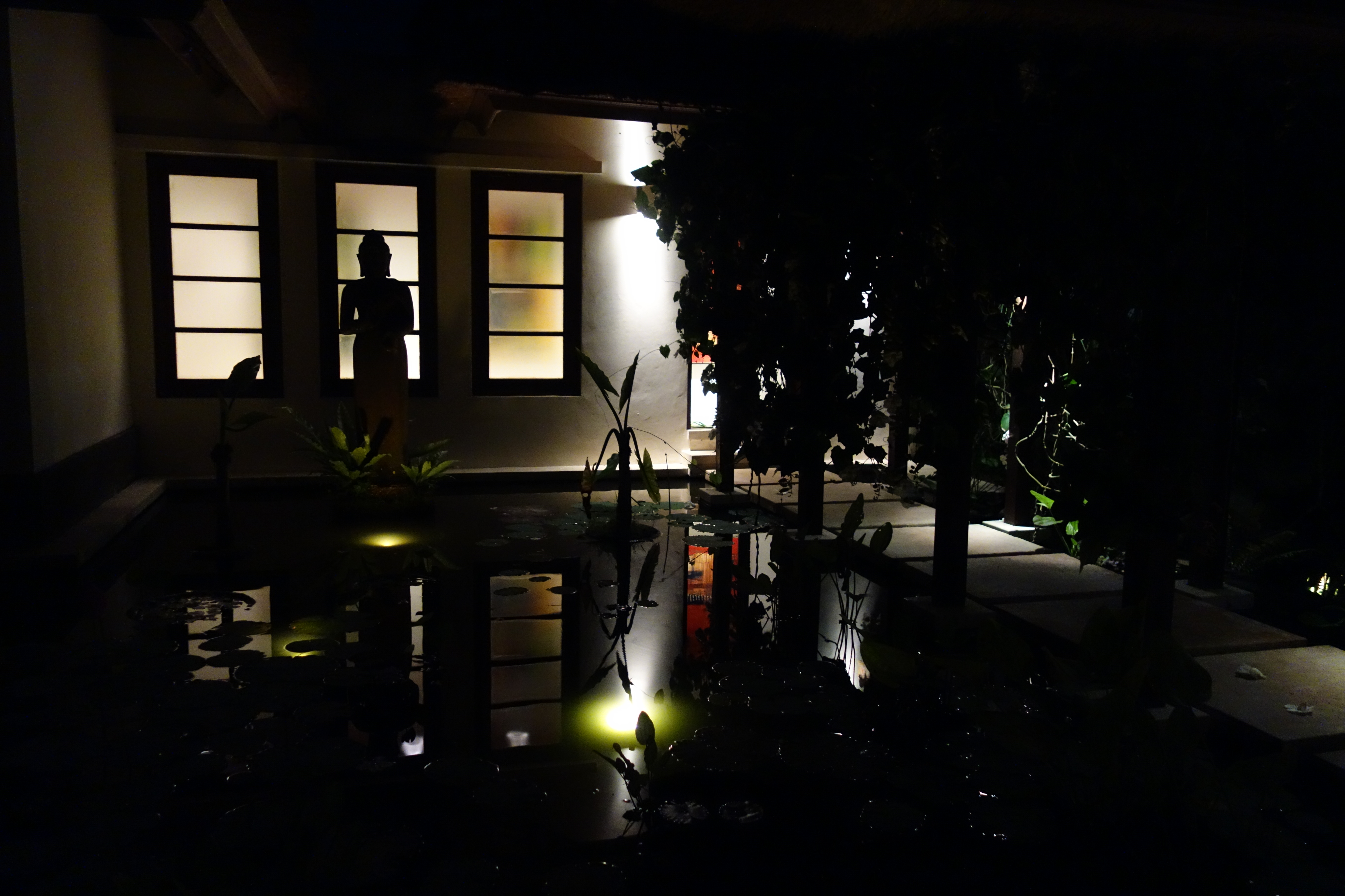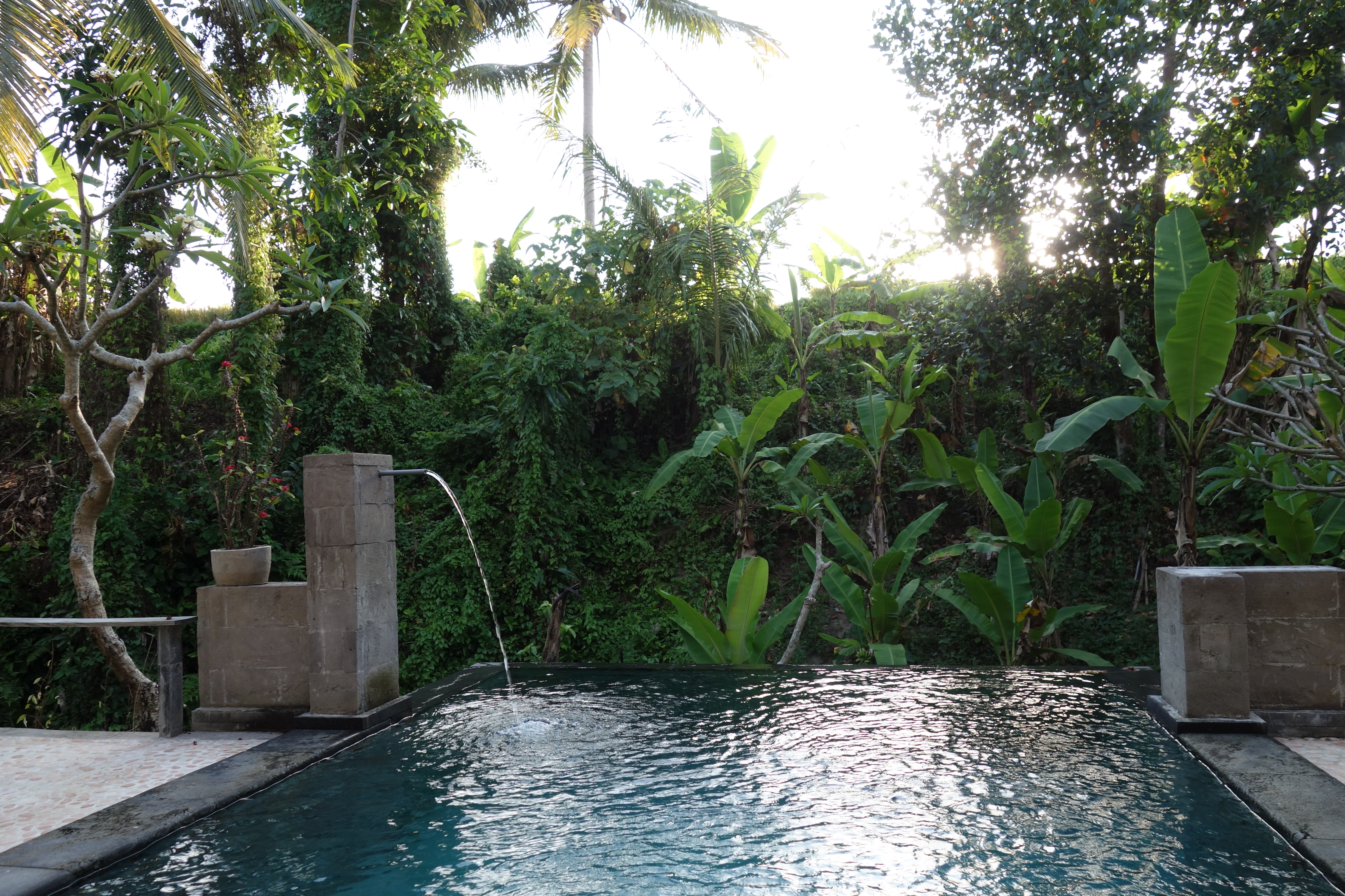 I swam in the shadow of Buddha, walked the ridge, descended into the valley to spot the bodhi tree, and snapped photos of green stalks against the sunrise. I sunk into a massage by a pony-tailed Balinese biker while hearing porcine neighbors oink with gusto, and spent the better part of a day watching home movies and avant-garde films.